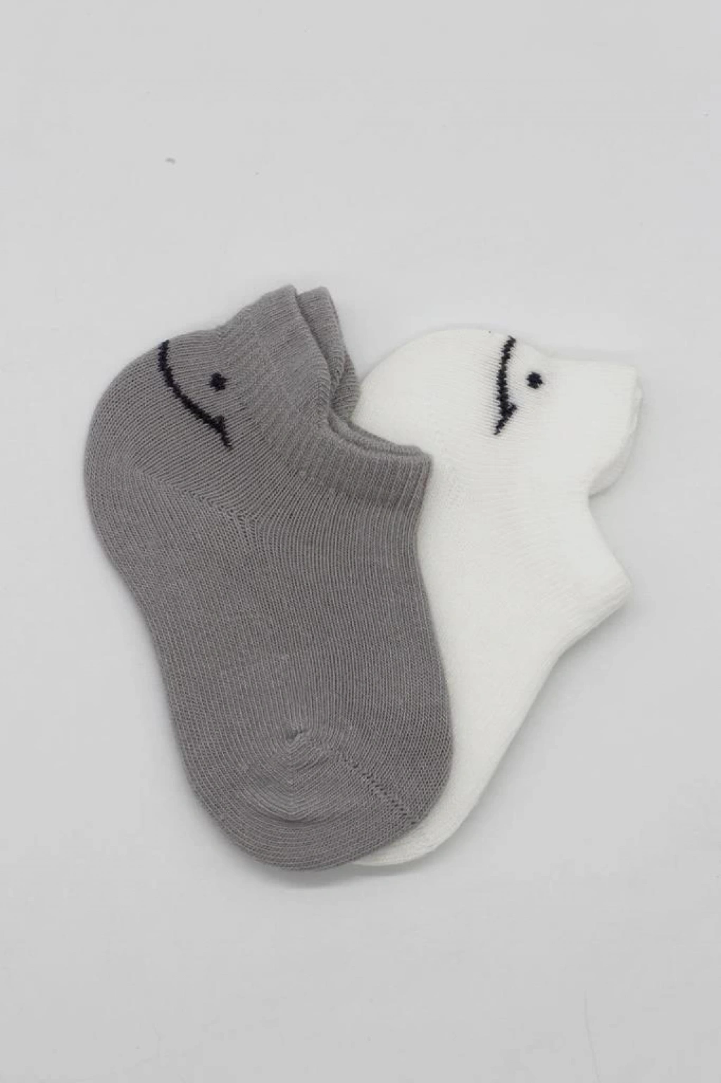 2'li Sneakers Smile Penye Çorap Gri Ekru Yumuşak Ve Rahat Günlük Çorap