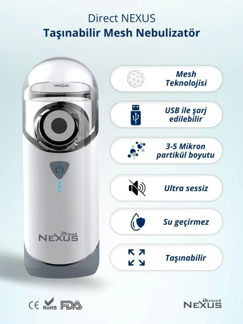 Çocuk Direct Nexus Taşınabilir Mesh Hava Makinesi Nebulizatör