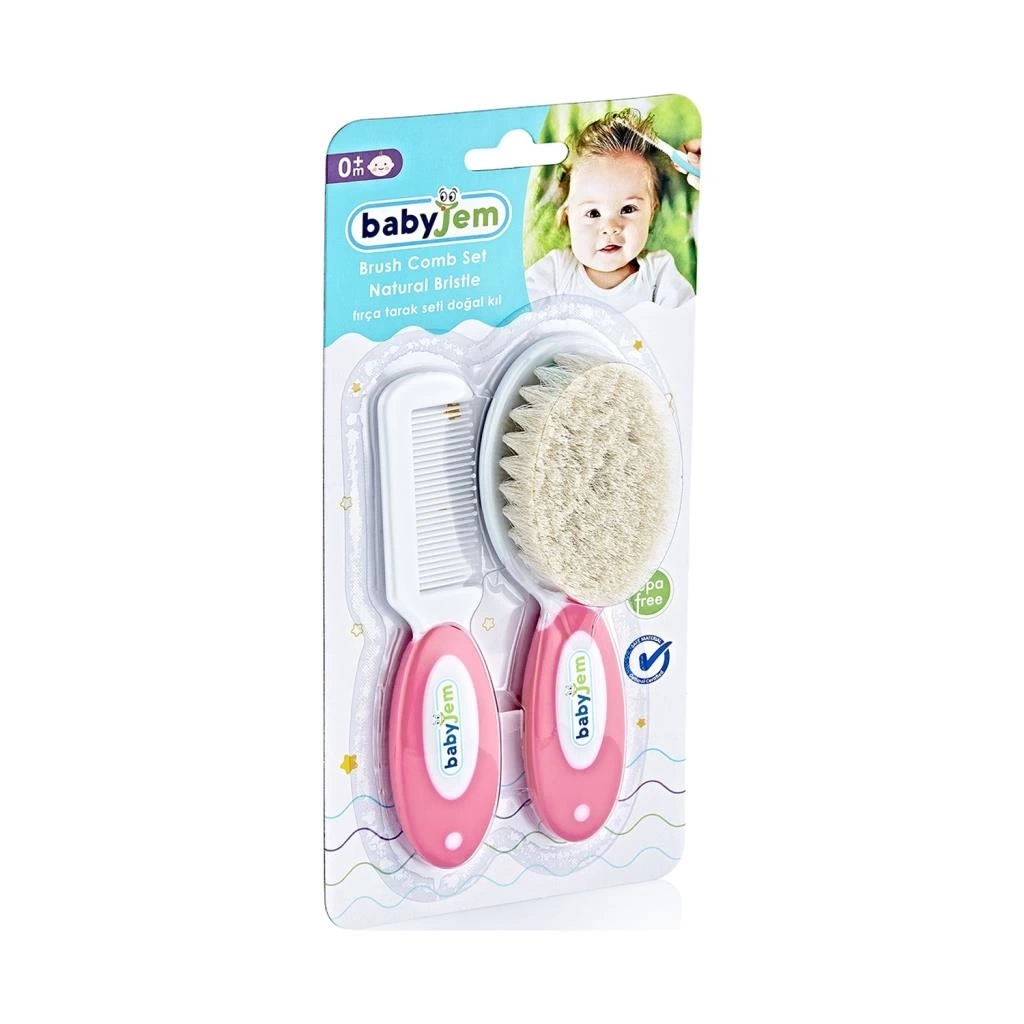 Babyjem yumuşak doğal kıl fırça ve yuvarlak uçlu tarak bebeğinizin saçını nazikçe taramanızı sağlar.