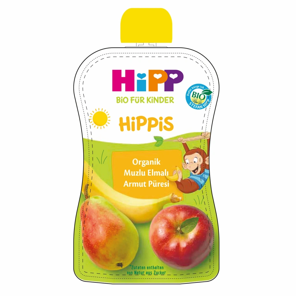 Hipp Organik Muzlu Elmalı Armutlu Meyve Püreli Kavanoz Maması 90 Gr Özellikleri;