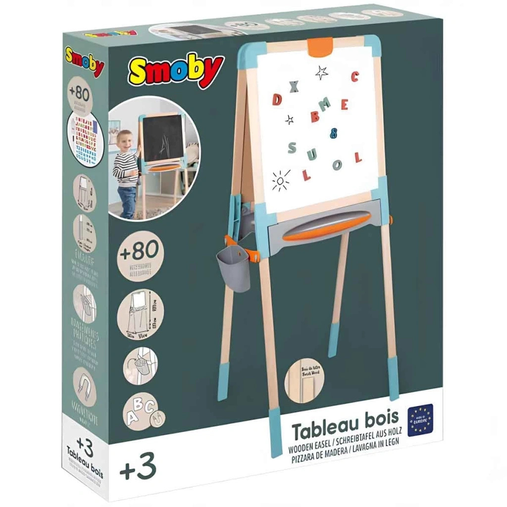 Smoby Çift Taraflı Manyetik Ahşap Yazı Tahtası 7600410401Oyun ve eğlenceyle harf ve rakamları öğretir!